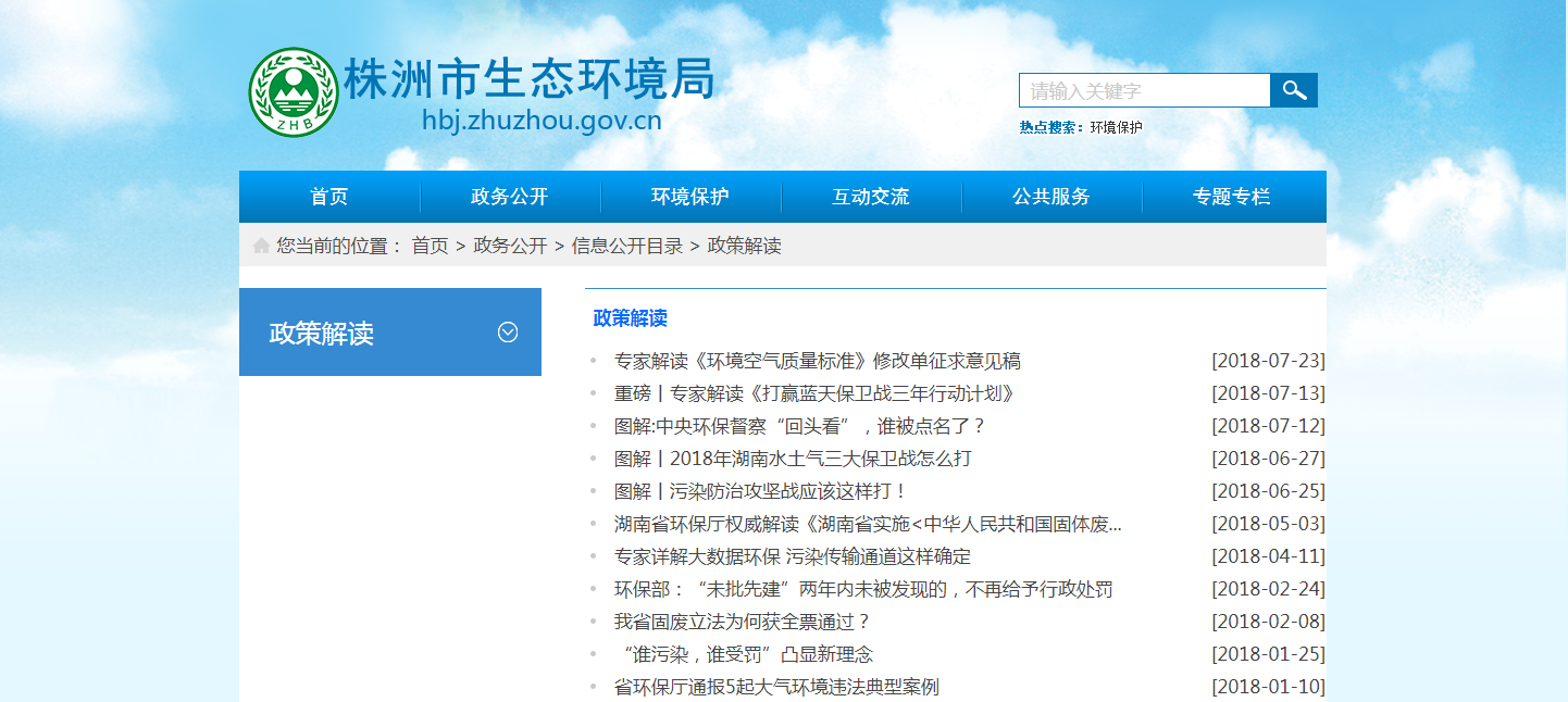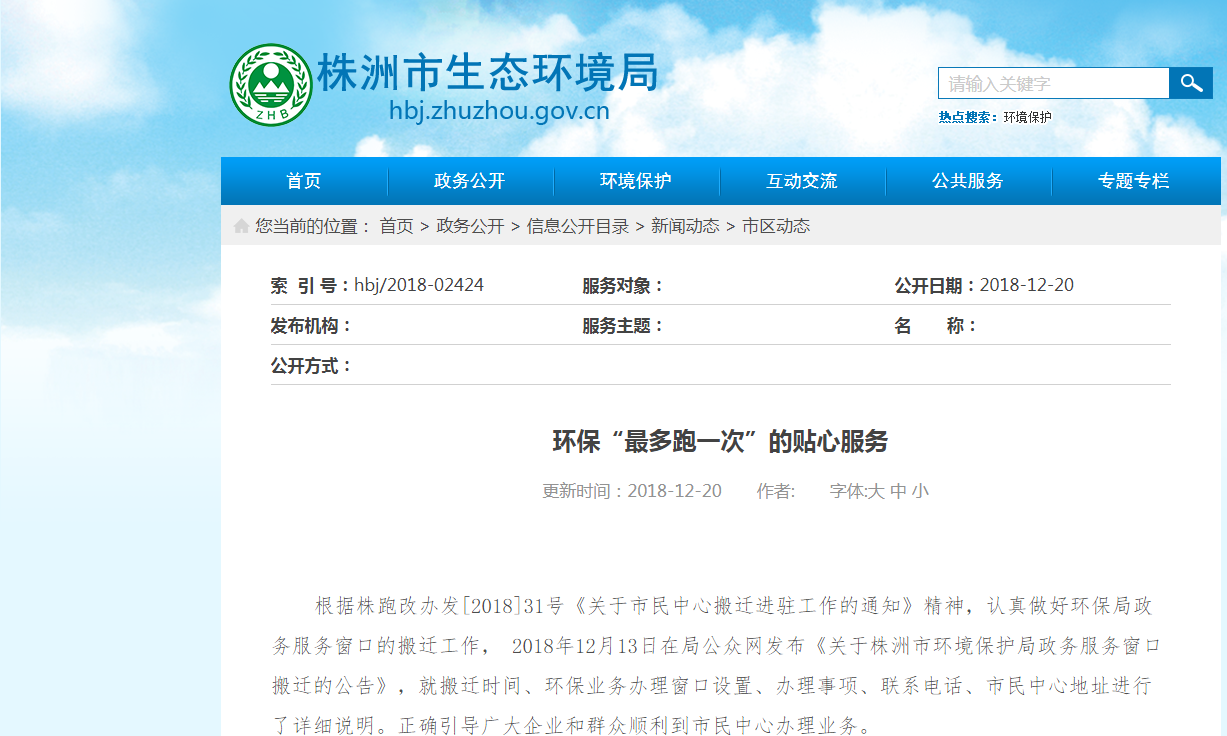 株洲市生态环境局2018年政府信息公开工作年度报告