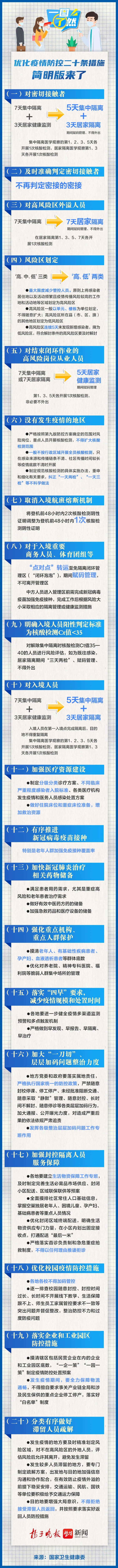 日前国务院联防联控机制综合组发布《关于进一步优化新冠肺炎疫情防控措施科学精准做好防控工作的通知》公布进一步优化防控工作的二十条措施快来一图了解——