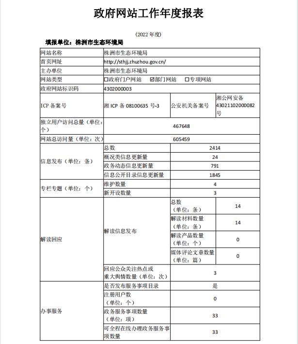 株洲市生态环境局2022年政府网站工作年度报表