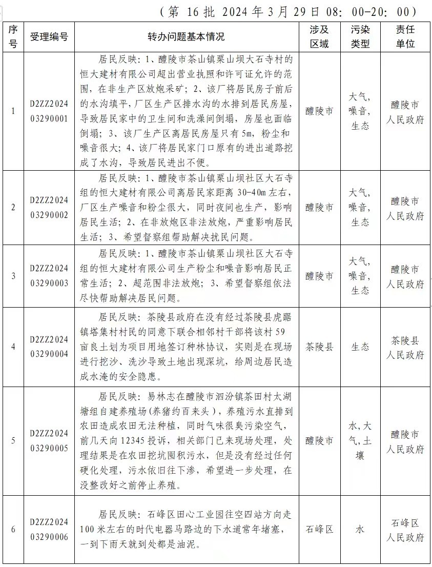 省督察组向我市转办交办第16批共计10件(其中,交办件1件、信访举报件9件)。截至目前,累计转办交办131件(其中,督办件1件、交办件18件、信访举报件112件)。
