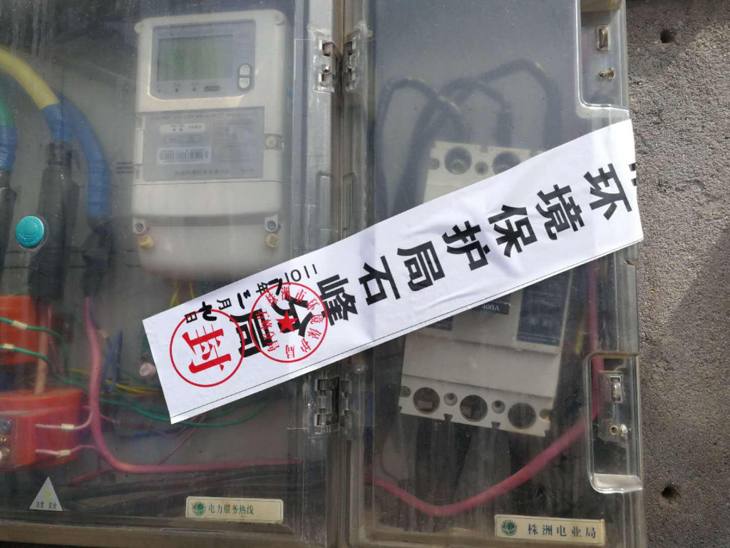 株洲市通缘塑业有限公司租赁株洲市石峰区建设村一个私人厂房从事废旧塑料回收加工生产项目,主要设备有造粒机、破碎机和清洗机等,没有取得排污许可证,直接向环境排放清洗废水和工艺废气。在2017年8月我局接到群众投诉后,对该企业进行现场监察时要求该企业立即停产,企业方拒不执行,随后我局对其立案并移送公安,但是该企业依然我行我素拒不停产。春节后我局给株洲市经信委去函,申请强制断电,3月9日我局执法人员陪同株洲市经信委和株洲市电业局工作人员依法对该企业实施了强制断电行动,并在变电箱上贴上封条,成功取缔了一个“散乱污”企业。(石峰分局 杨桦)