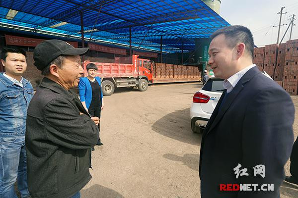 何朝晖向株洲蛟龙建材有限责任公司相关负责人宣讲工业企业退出生态绿心政策