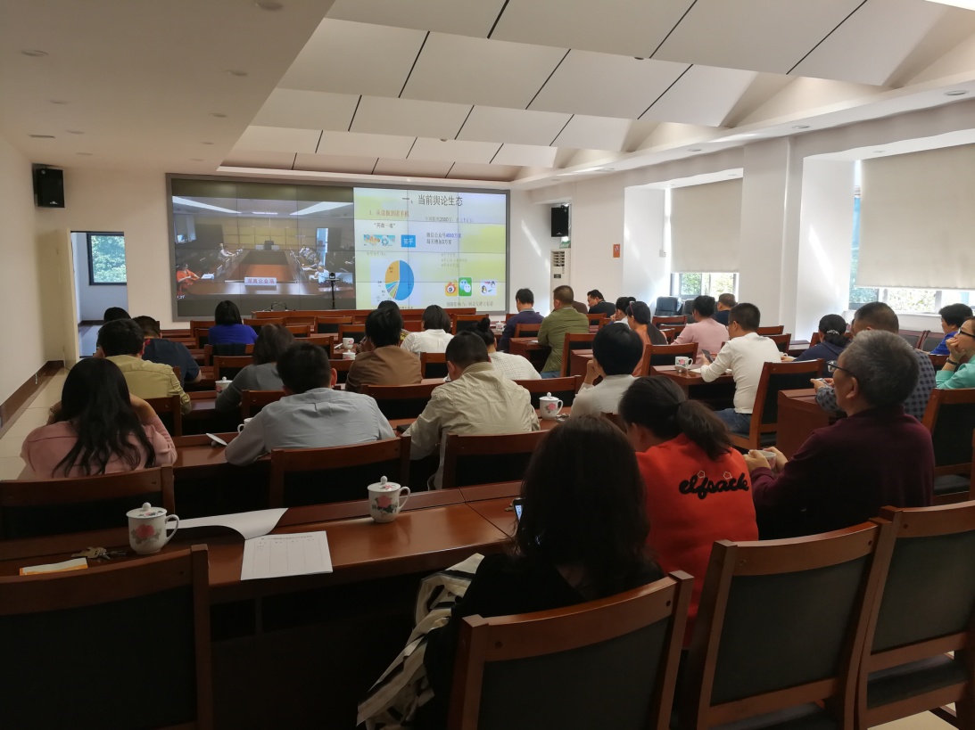 10月12日下午,国家生态环境部通过视频会议系统举办第28期"环保大讲堂",由人民网舆论与公共政策研究中心主任祝华新作"涉生态环境保护舆情应对和舆论引导"专题讲座。局领导、机关科室及局属单位共48人参加学习。