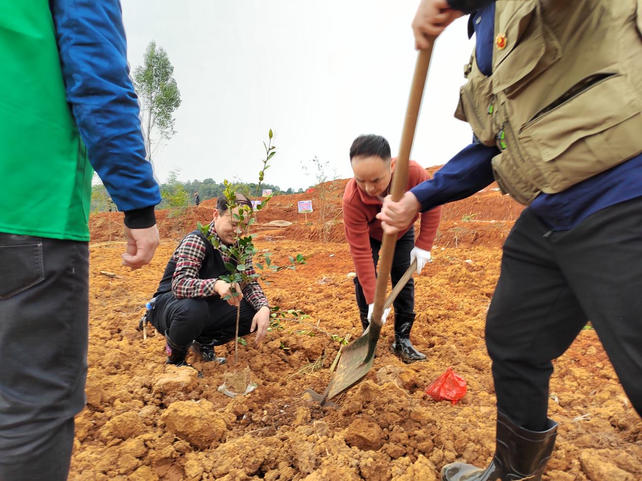 3月10日,市生态环境局组织干部职工到天元区三门镇松柏村开展义务植树活动,以实践行动为株洲增添一抹绿色的风景。