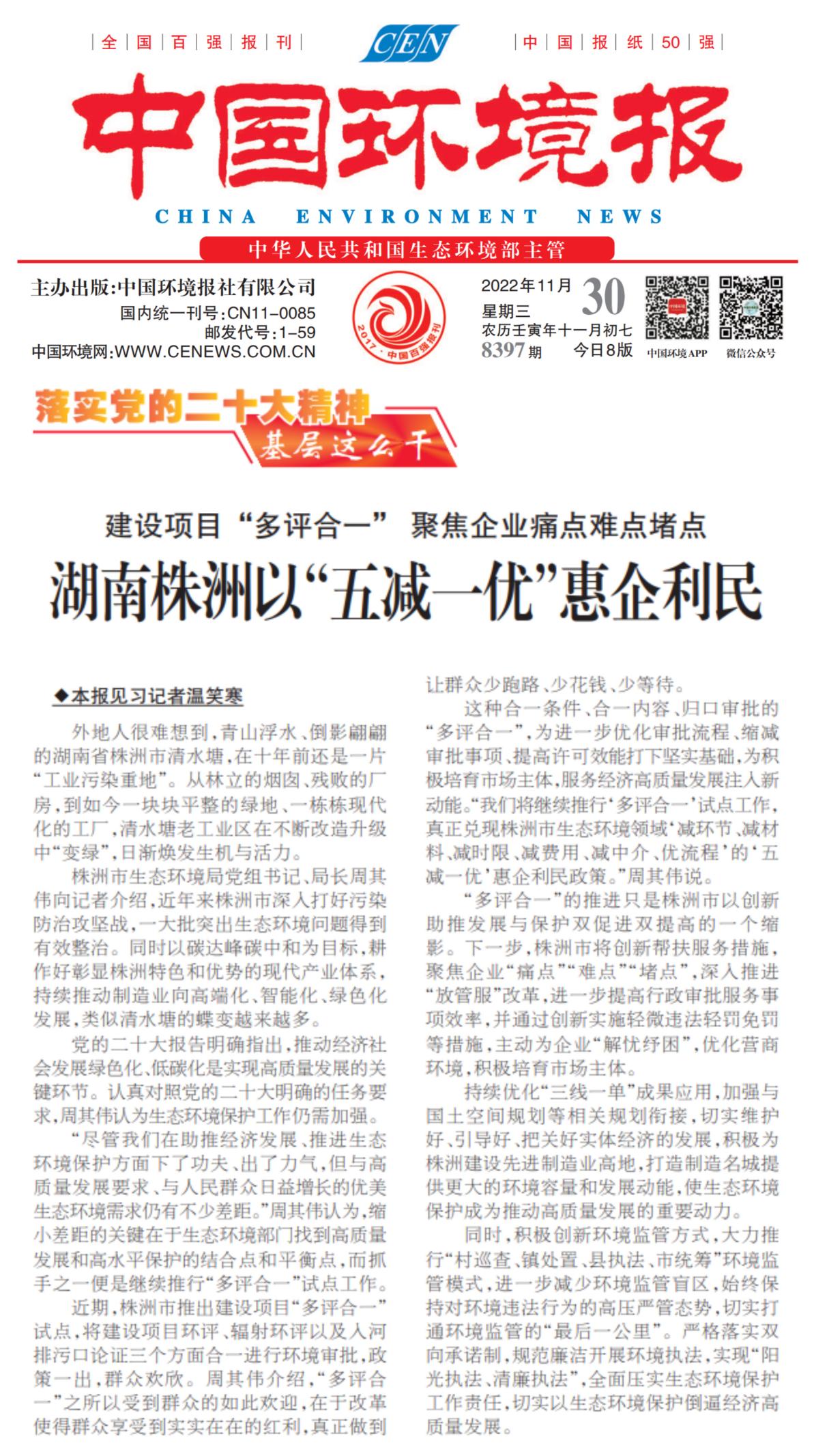 近日,株洲市生态环境局"多评合一"工作经验获《中国环境报》向全国推介。下面,我们一起来了解下。