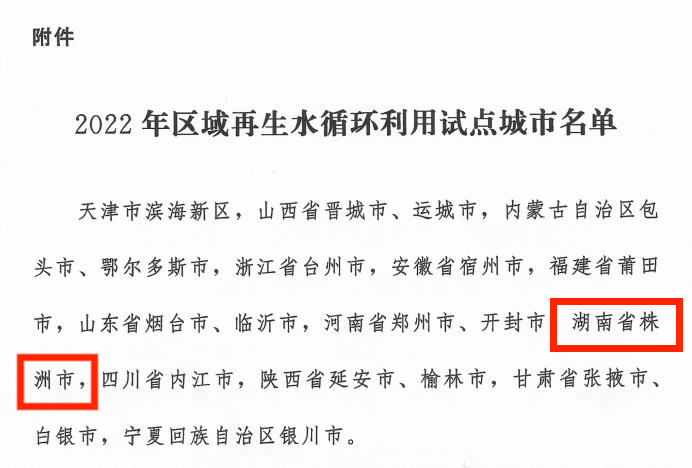 近日,生态环境部公布2022年区域再生水循环利用试点城市名单,株洲市获选,为全省唯一。