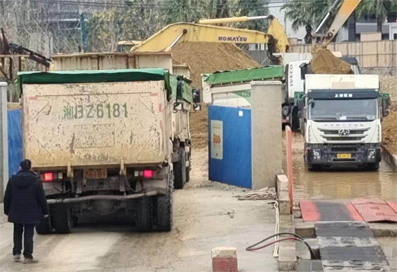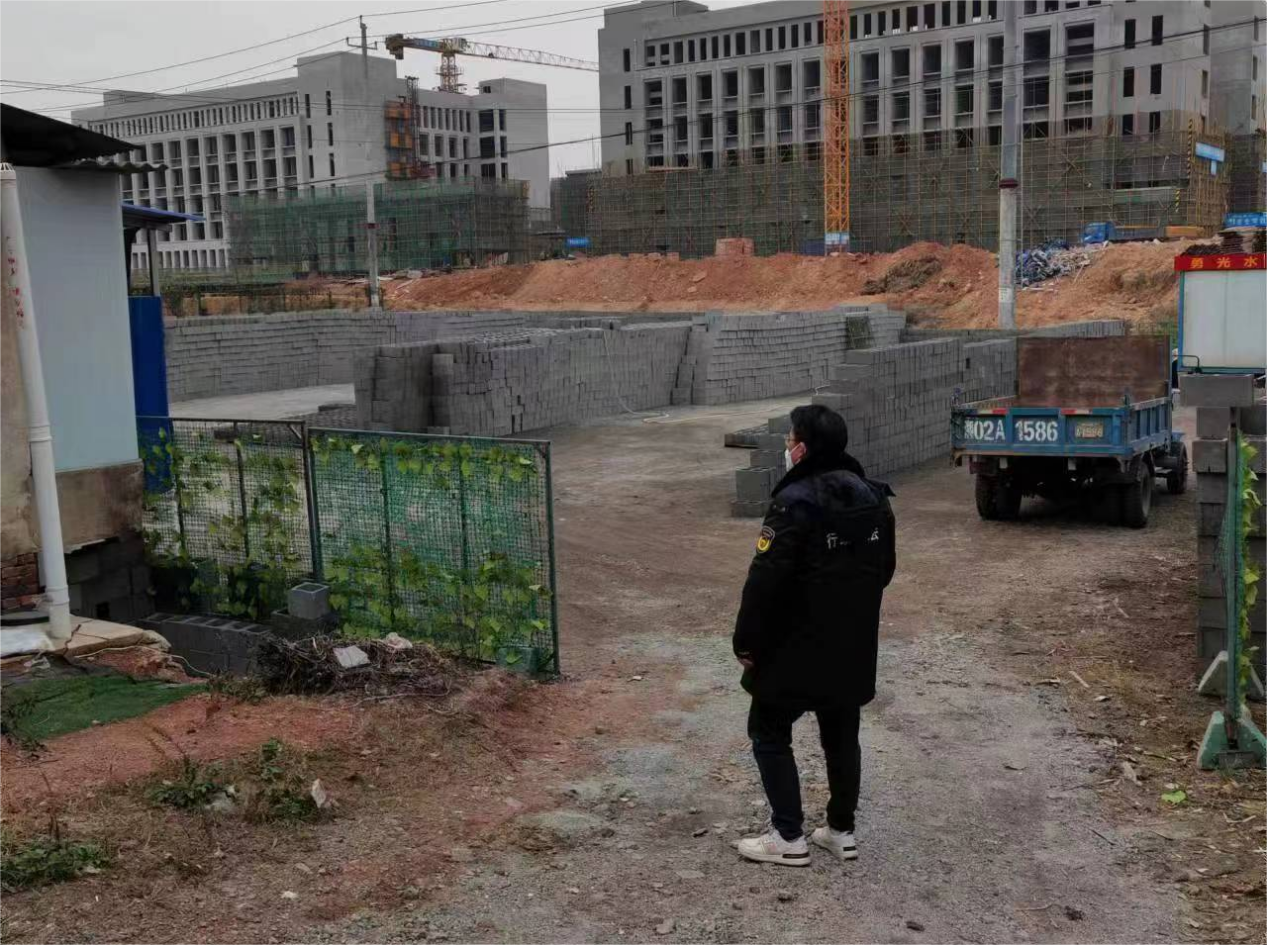 ▲天元分局执法人员现场检查工地环保工作开展情况