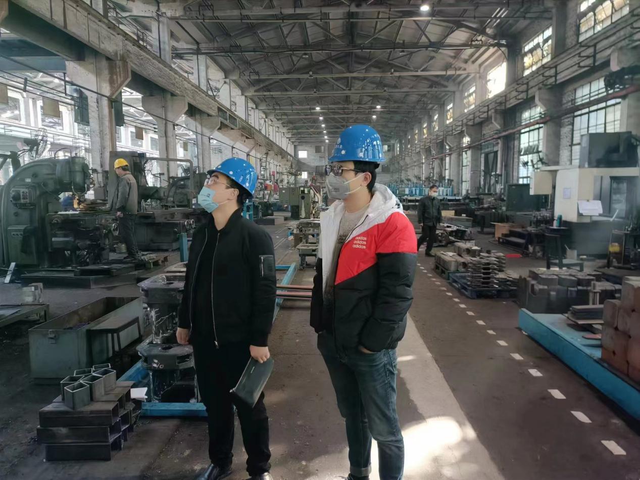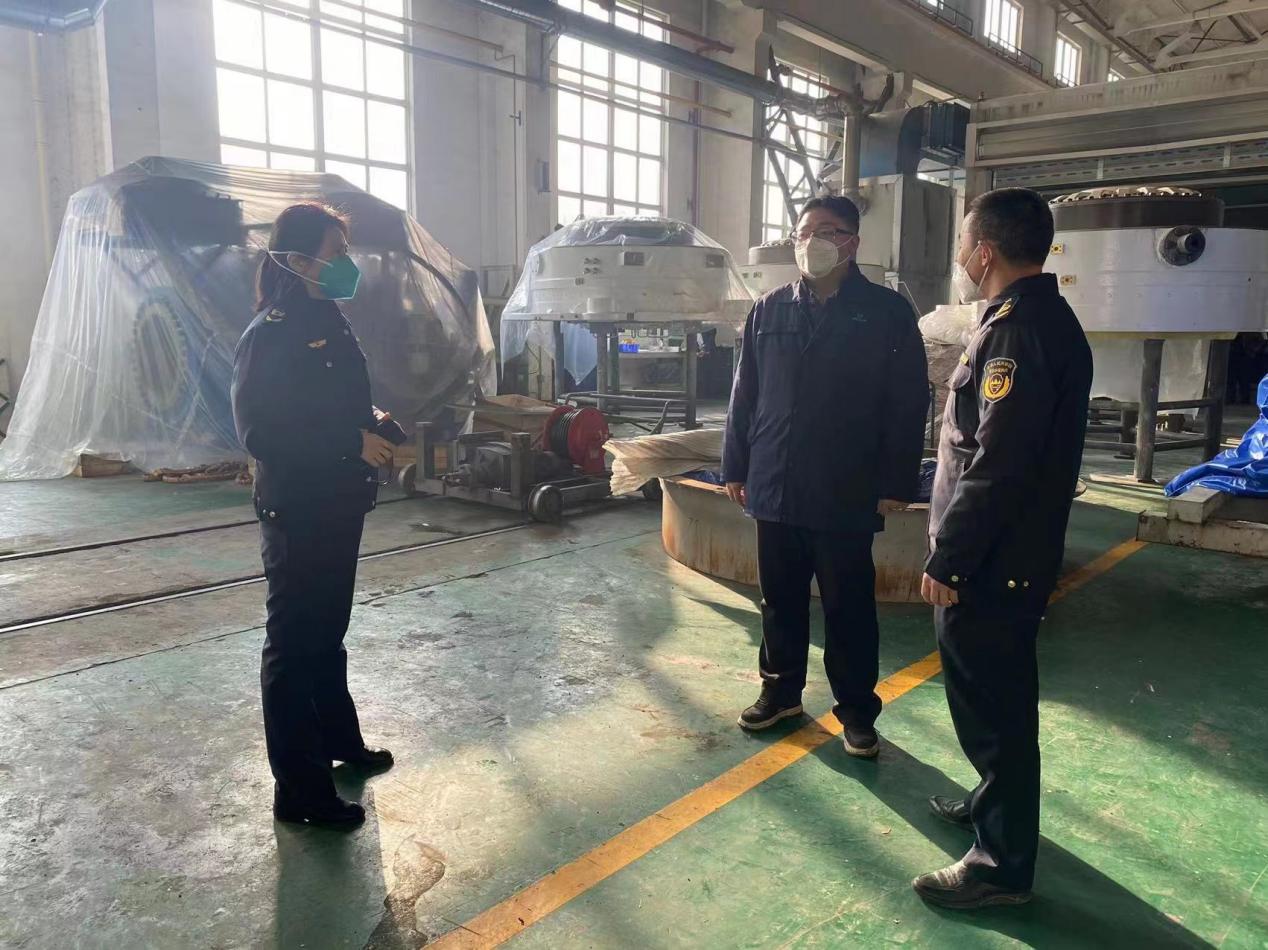 ▲荷塘分局生态环境工作人员现场检查环保设施运行情况