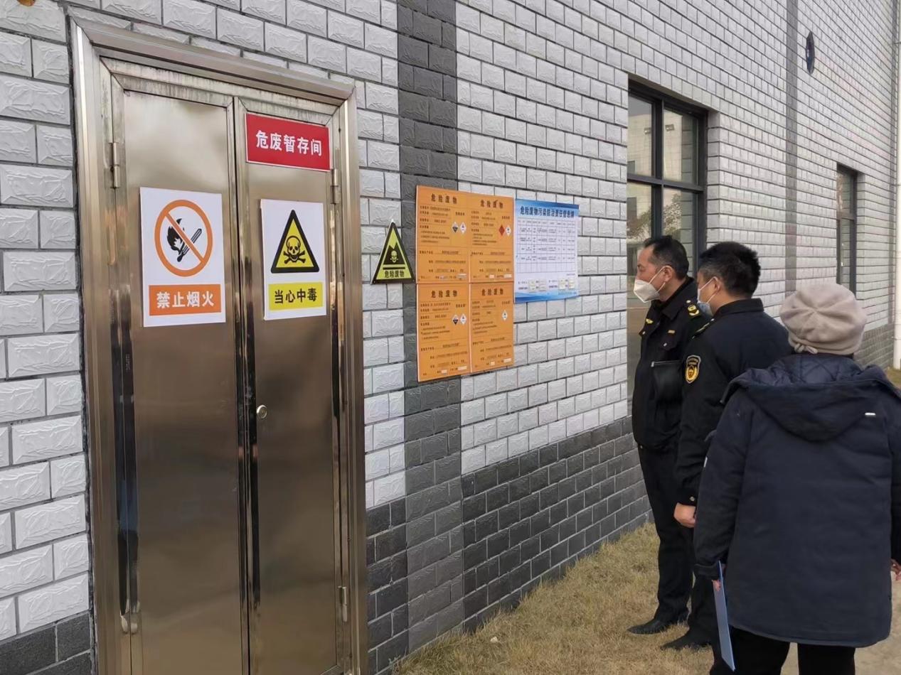 ▲荷塘分局执法人员现场检查危废存储和转移的情况