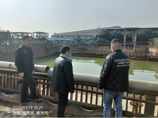 ▲芦淞分局执法人员现场检查企业环保设施运行情况