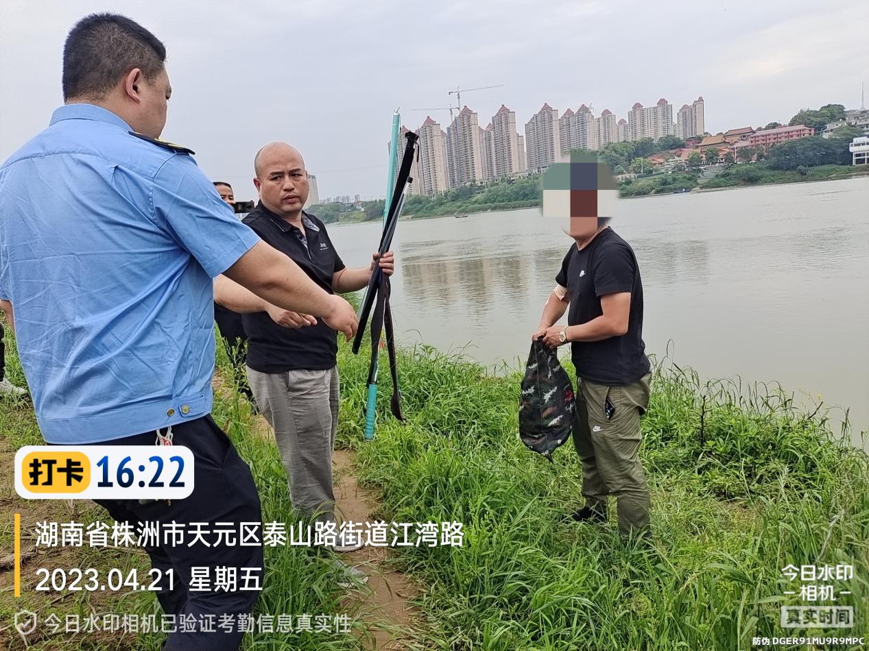 4月18日,渌口区多部门联合执法,对渌口辖区渌江、湘江水域开展巡逻劝导,共查处违规垂钓人员7人,扣押钓具并将以上违法违规人员带至派出所谈话训诫。
