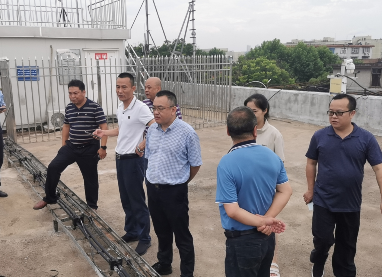 6月19日,局党组书记、局长周其伟带队调研查看城区大气环境状况,与城区相关负责人一起商讨"精细化"管控事宜。