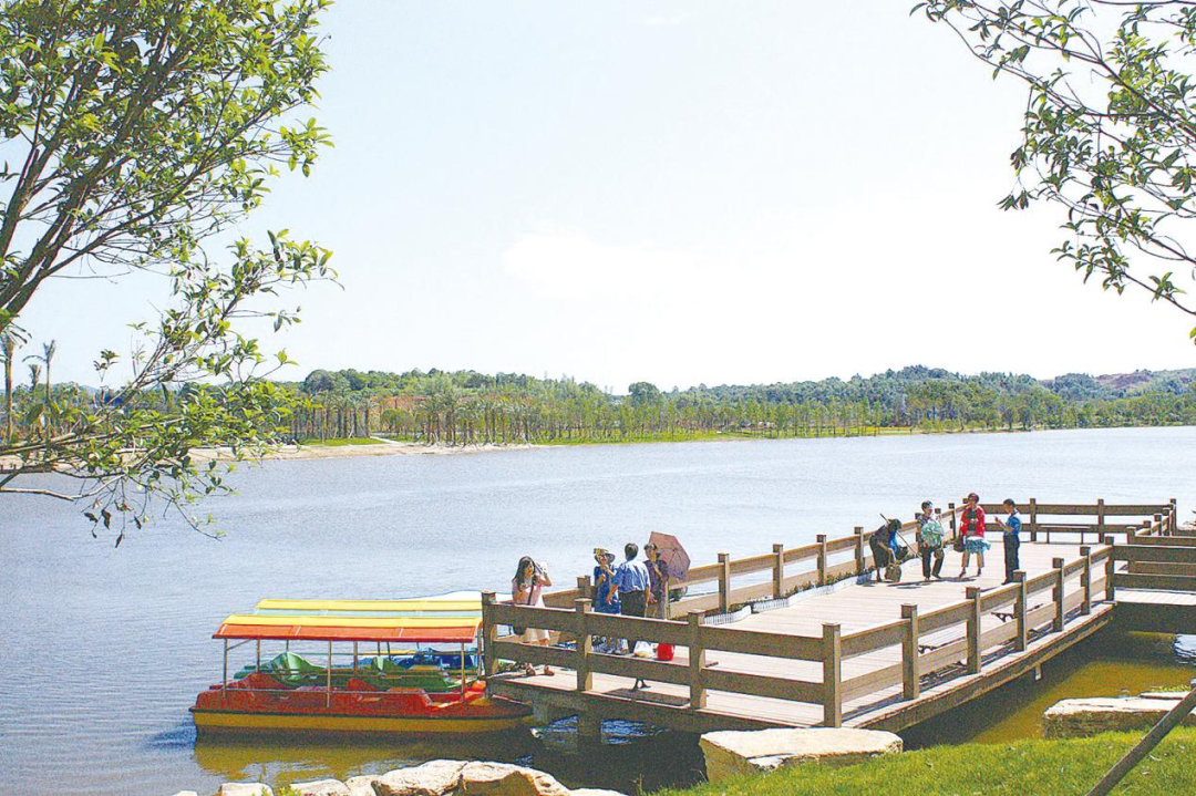 湿地公园被誉为"城市之肺"。经过系统治理,万丰湖已经改变了过去遇见阳光就泛臭、遇见洪水就泛滥的局面,成为城市的绿色会客厅,获评"湖南省美丽河湖""国家水利风景区"等荣誉。夏令时节,万丰湖成为株洲人民休闲纳凉"打卡"景点。碧水蓝天之间,水溪休闲区、活力商业区、疏林水岸区、滨水运动区等琳琅满目。