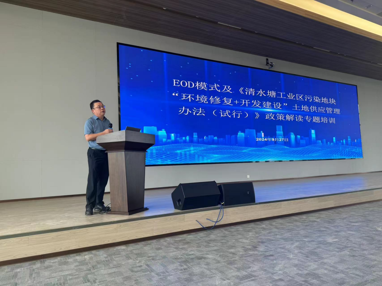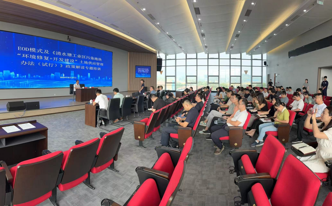 为提高全市对生态环境导向开发模式(EOD)的认识,提升EOD项目的谋划水平,强化金融对深入打好污染防治攻坚战的精准支撑。9月27日,在市委、市政府的统一部署下,株洲市组织召开了生态环境导向开发模式(EOD)培训会,并对即将印发的《清水塘工业区污染地块"环境修复+开发建设"土地供应管理办法(试行)》进行了政策解读。