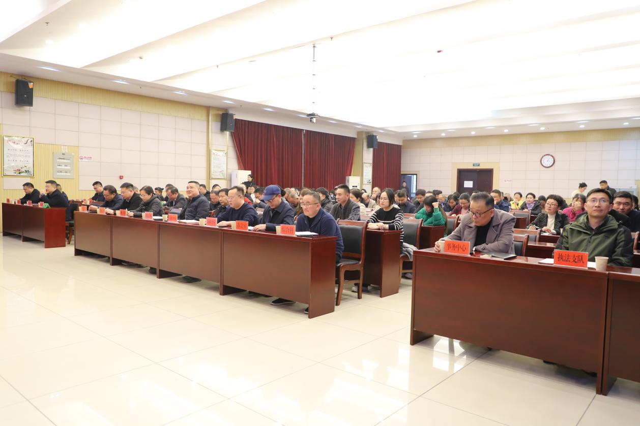 局领导班子成员,市管干部,局机关全体干部职工、执法支队机关、事务中心全体领导和干部职工、各分局局长及城区分局全体干部职工等参加会议。
