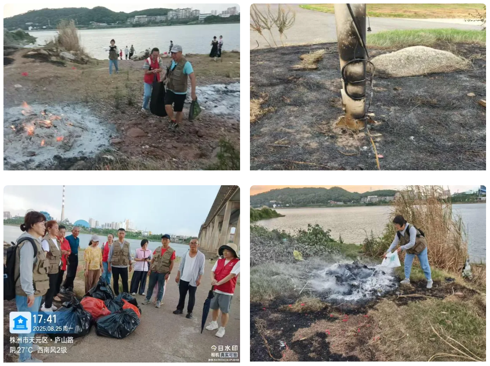 8月25日,湖南省绿色卫士株洲大队、天元区水利局、园林养护一所、河流守望者、属地社区组成联合行动组,针对株洲市五桥西桥下违规祭祀行为开展专项处理工作,以实际行动守护河道环境与公共安全。