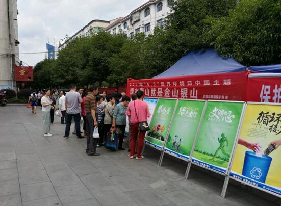 上午的活动围绕今年"六.五"环境日中国主题"绿水青山就是金山银山",采取展示宣传展板、发放宣传资料、悬挂宣传横幅、开展现场咨询、进行有奖答题等形式,宣传环保法、防洪法、湘江保护和治理、绿色发展等内容。活动共展出宣传展板40余块,悬挂环境保护宣传横幅10余条,接受现场咨询300余人次,免费发放各类宣传资料2000余份。