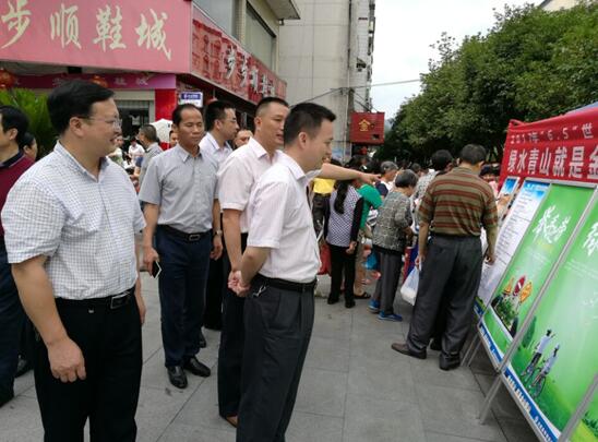 6月5日上午,县环委会组织环保、水利、畜牧、国土、农业、林业、交通、卫计、住建、安监、司法、科协等部门在县城步行街举行"六.五"环境日集中宣传活动。副市长何朝晖出席活动,市环保局副局长毛亚文、县人民政府副县长陈黎明等陪同。