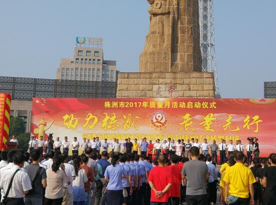 9月18日,株洲市2017年质量月活动启动仪式在神农城广场盛大举行,市环保局作为创建"全国质量强市示范城市"领导小组主要成员单位,组织了机关干部20余人参加了本次活动。 质量月是在国家质量工作主管部门的倡导和部署下,由全社会尤其是广大企业积极参与,旨在提高全民族质量意识、提升质量的一年一度的专题活动,时间为每年的九月。今年全国质量月的主题是:大力提升质量,建设质量强国;我市质量月的主题是:创建全国质量强市示范城市,助力株洲经济转型升级。 市环保局在活动现场设立了咨询台,并制作了相关宣传展板。