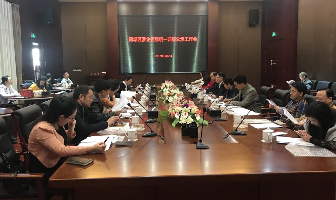 为了贯彻落实湖南省商事制度领导办公室下发的《关于推进国家企业信用信息公示系统和“多证合一”等业务相关应用的通知》,11月2日,荷塘区组织各职能部门召开工作部署会议,会议主要要求各职能部门将企业的行政许可信息、行政处罚信息、抽查检查结果信息、依据相关规定建立的对企业设施信用约束,并对辖区内的“黑名单”信息、小微企业享受扶持政策信息进行社会公示,切实保障公众的知情权。