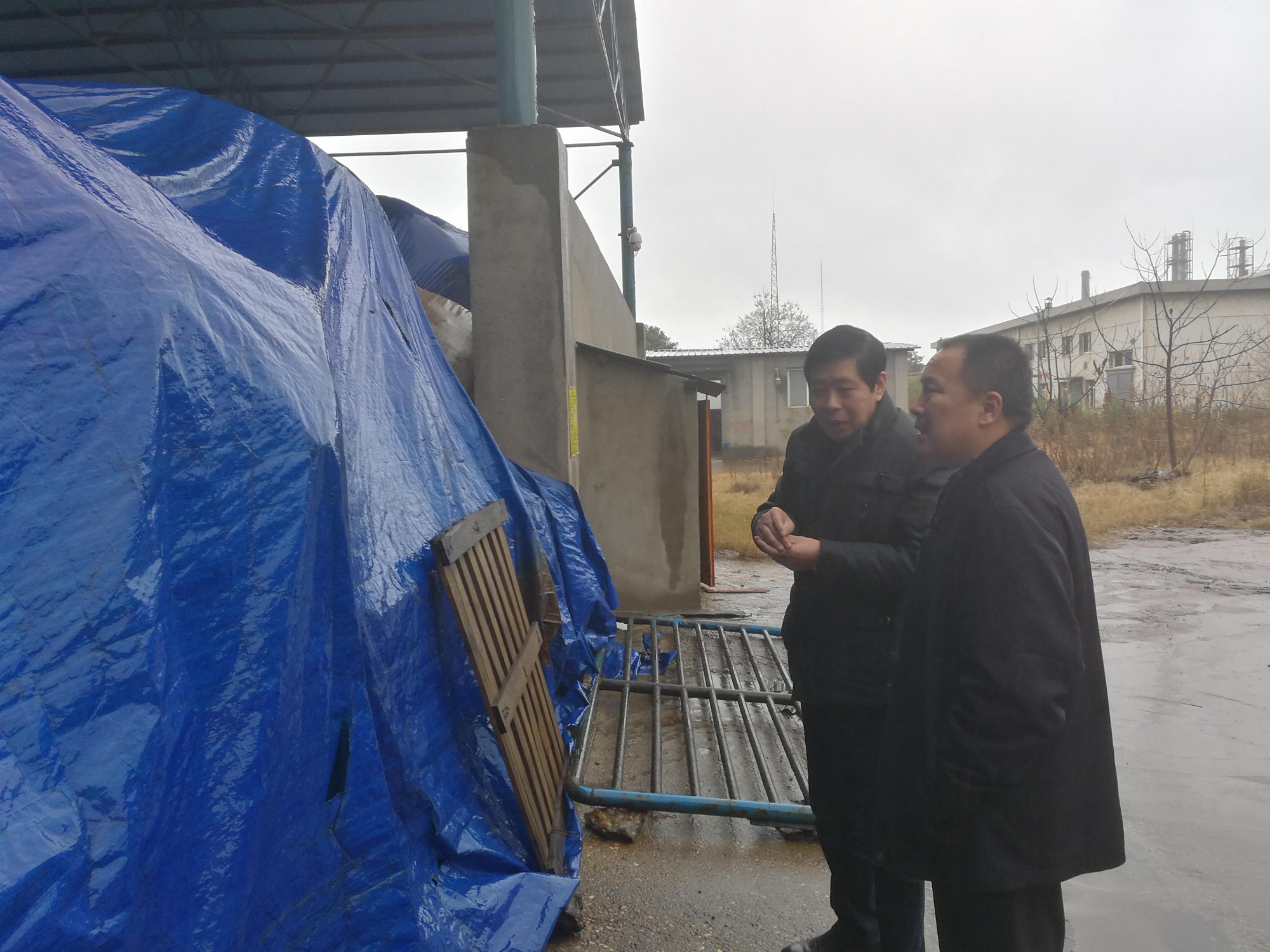 随后,王定升同志冒雨查看了海利化工关停退出后的残渣废液堆放处置情况,要求海利化工一定要按照要求,规范堆放,合理处置,安全退出,不给环境造成影响。