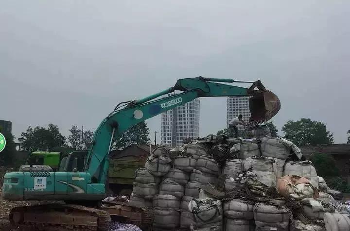 2018年5月7日下午16时左右,我局发现有网友在网络上反映,清水塘老工业区原钢厂拆迁地有人于2017年填埋了10-20个装有疑似危险废液的大油桶和塑料桶。我局执法人员马上联系举报人了解情况。章文才局长要求石峰分局当晚到现场勘查。5月8日一早会同市公安局治安支队、公安局石峰分局、市环保局石峰分局、市电视台民生政法频道和举报人赶赴现场,并租来挖机对举报人和周边居民指认的地点进行深挖搜寻。