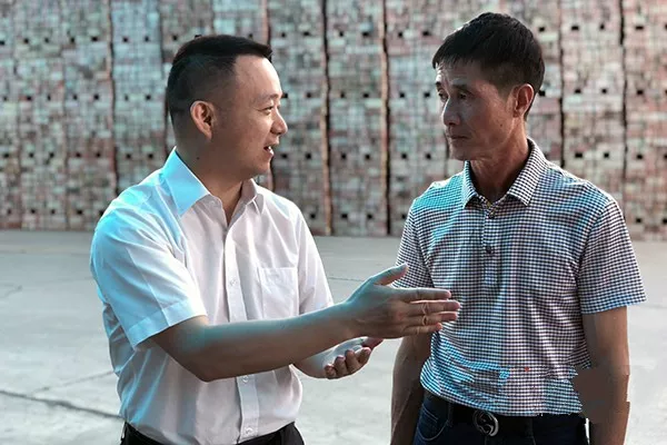 ▲ 何朝晖向企业负责人宣讲国家环保政策