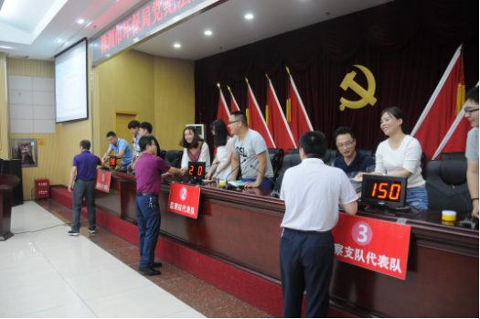 7月6日,市环保局系统举行"党纪法规印我心.廉洁自律践于行"党纪法规知识竞赛选拔赛,局机关代表队、监测站代表队、监察支队代表队共9名党员参加比赛。局机关代表队三名党员突出重围,代表局系统参加全市党纪法规知识竞赛,监测站代表队、监察支队代表队分获二、三名。