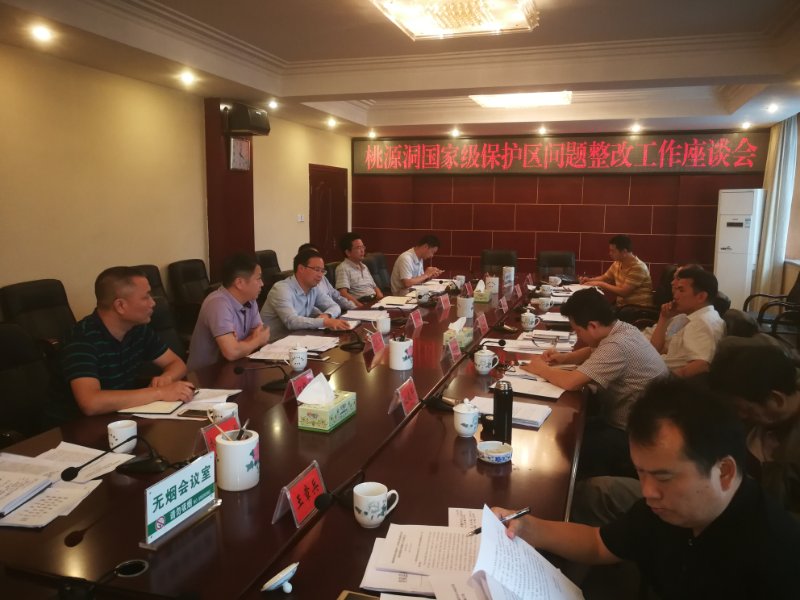 调研组听取了炎陵县政府关于桃源洞存在的相关问题整改进展情况汇报,并就下一步工作安排和整改要求的落实交换意见。