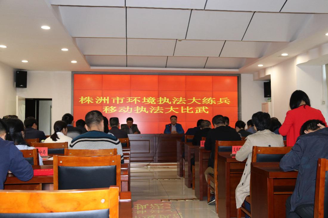 根据《关于开展2018年全市环境执法大练兵的通知》要求,为推进环境执法队伍建设,进一步提高环境执法水平,市环保局决定举办2018年株洲市移动执法大比武活动,由市环境监察支队承办。2018年10月17日上午,株洲市环保局A座1楼应急指挥中心组织开展全市环保移动执法比武活动,市环境监察支队颜少龙支队长出席会议,会议由陆清国副支队长主持,醴陵市环保局、攸县环保局、茶陵县环保局、炎陵县环保局、株洲县环保局、天元区环保局、荷塘区环保局、石峰区环保局、芦淞区环保局、市环境监察支队十支代表队参加。