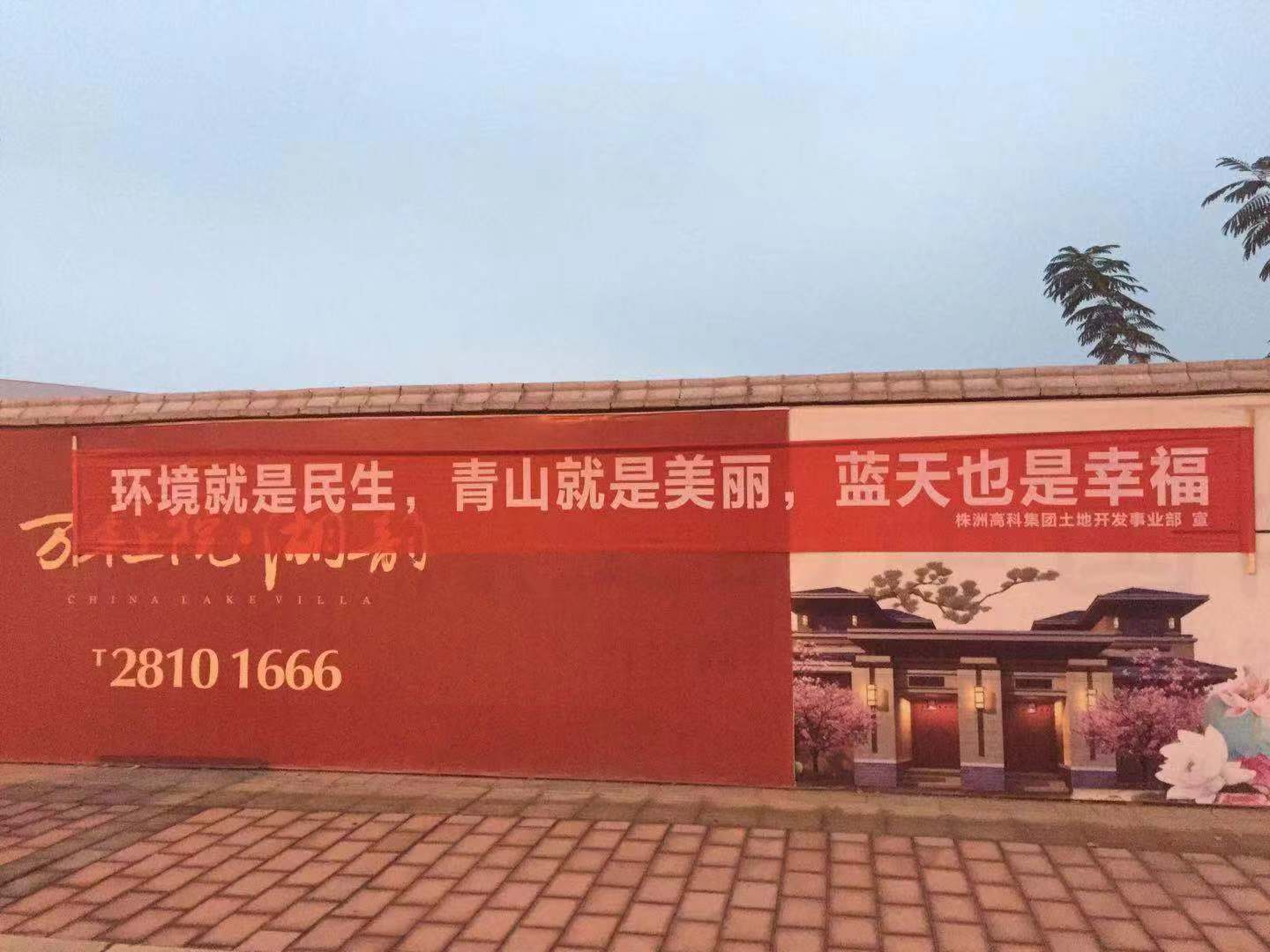 在项目工地围挡上,采用了宣传横幅的方式,用“保护环境,人人有责,绿色环境,人人共享”、“下大力抓好生态环境建设,坚决打好‘蓝天、碧水、地绿’攻坚战”、“环境就是民生,青山就是美丽,蓝天也是幸福”等宣传标语对习近平生态文明思想进行了大力宣传。让大家在项目建设工作中时时不忘保护环境,拒绝扬尘污染,为“蓝天、碧水、地绿”攻坚战打下坚实的基础。