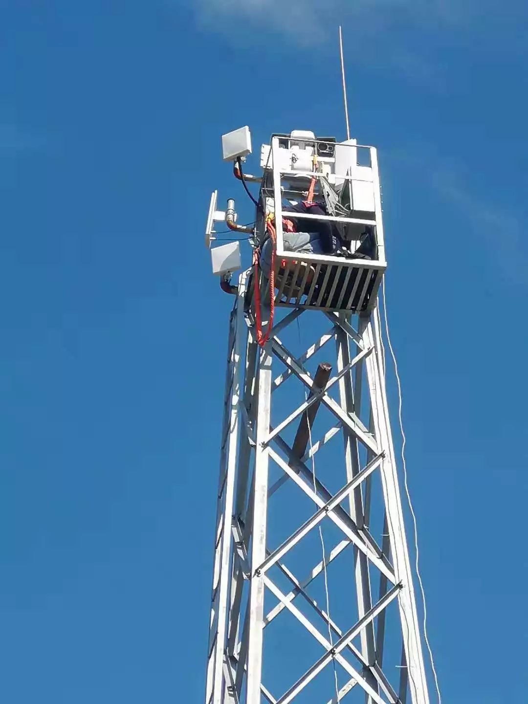 ▲施工人员爬上瞭望铁塔安装云台监控设备