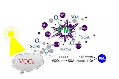 另一方面,VOCs具有相对强的活性,导致它们在大气中既可以以一次挥发物的气态存在,又可以在紫外线照射下,在PM10颗粒物中发生无穷无尽的变化,再次生成为固态、液态或二者并存的二次污染物存在,且参与反应的这些化合物寿命相对较长,可以随着天气变化,或者飘移扩散,或者进入水和土壤。