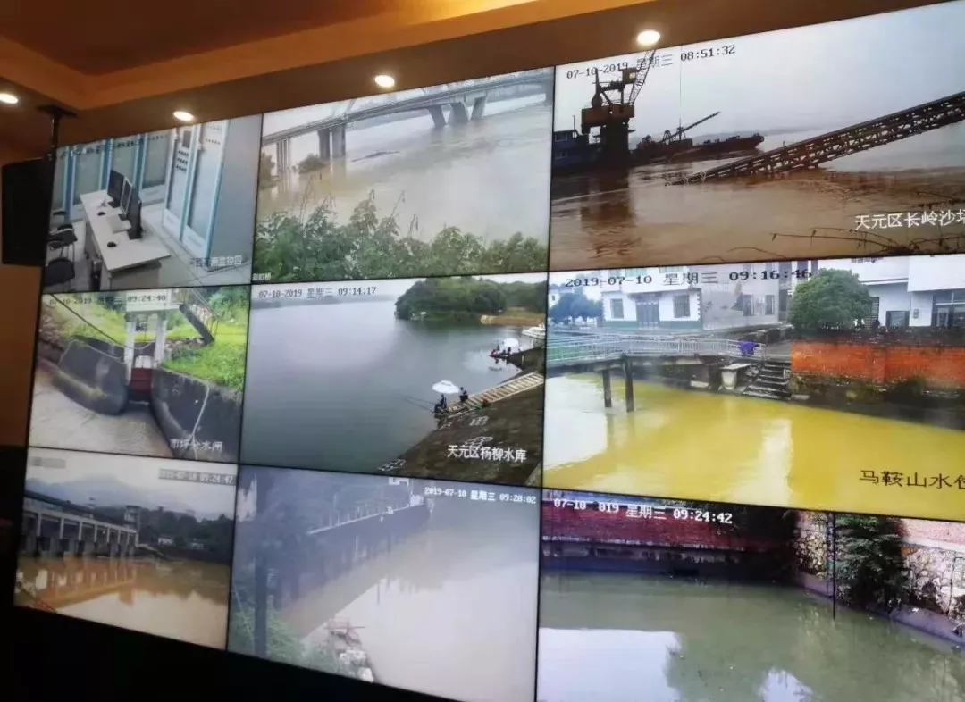 图丨7月10日上午,市防汛办工作人员调查监控,查看各地水情