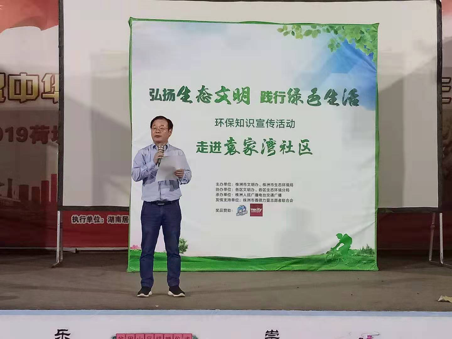 株洲市“弘扬生态文明、践行绿色生活”环保知识进社区大型宣传活动在荷塘区天鹅湖社区正式启动。2019年10月20日晚,宣传活动再次走进荷塘区袁家湾社区,我局易广志局长参加宣传活动。