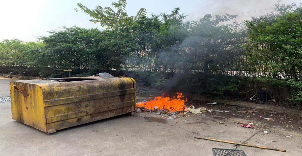 一、二中队在现场排查的情况如下:八一五油库这一线未看到烧垃圾。碧桂园施工区未见焚烧垃圾。一二级水源保护区未见焚烧垃圾现象。旗滨玻璃厂内有垃圾焚烧现象,分局的执法人员教育当事人并当场扑灭。旗滨厂内石峰山区域未见焚烧垃圾。原油毡厂院内、石子山下区域未见焚烧垃圾现象。