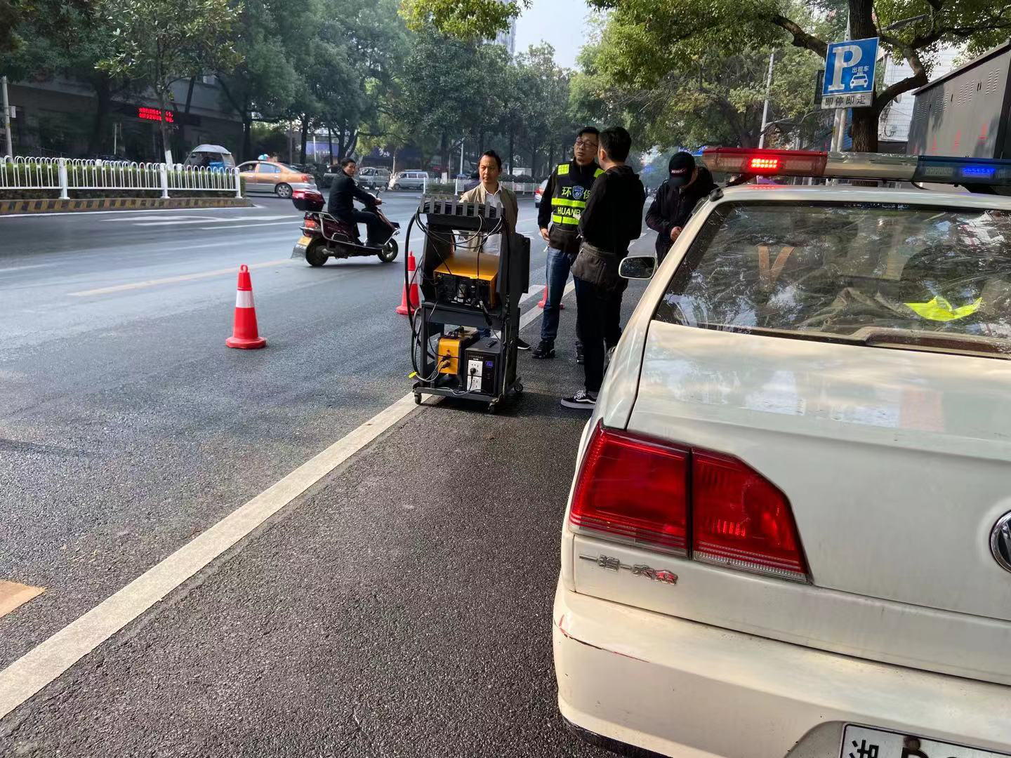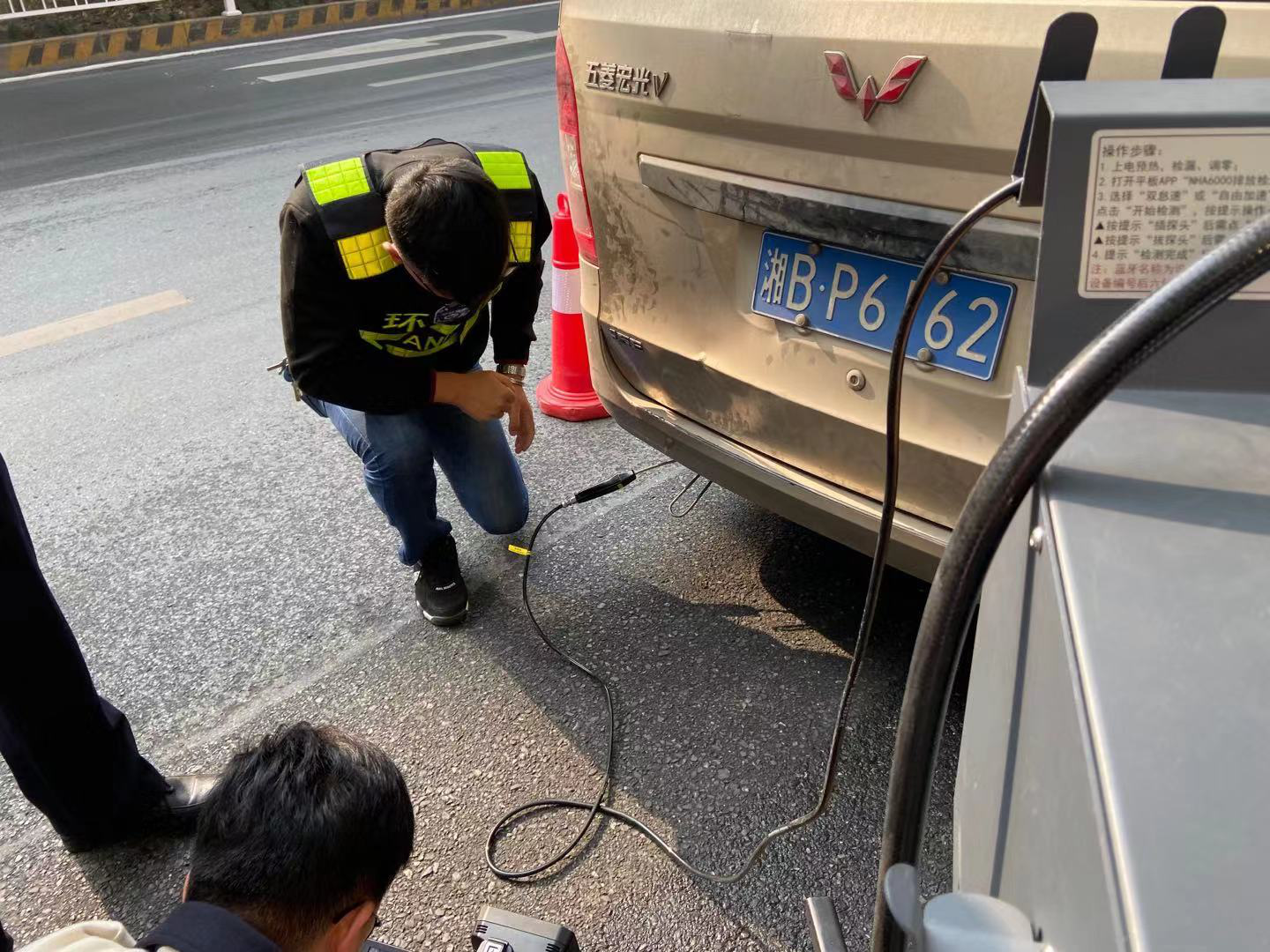 为认真推进大气污染防治攻坚战,根据株洲市生态环境局《关于进一步加强排放不合格机动车交通违法整治的通知》,2019年11月28日上午,荷塘分局与荷塘交警大队联合上路执法。按照任务分工,交警部门负责设置监测点,拦截车辆,对不合格车辆进行处罚,环保部门负责使用便携式检测设备对机动车尾气进行检测及上报数据。