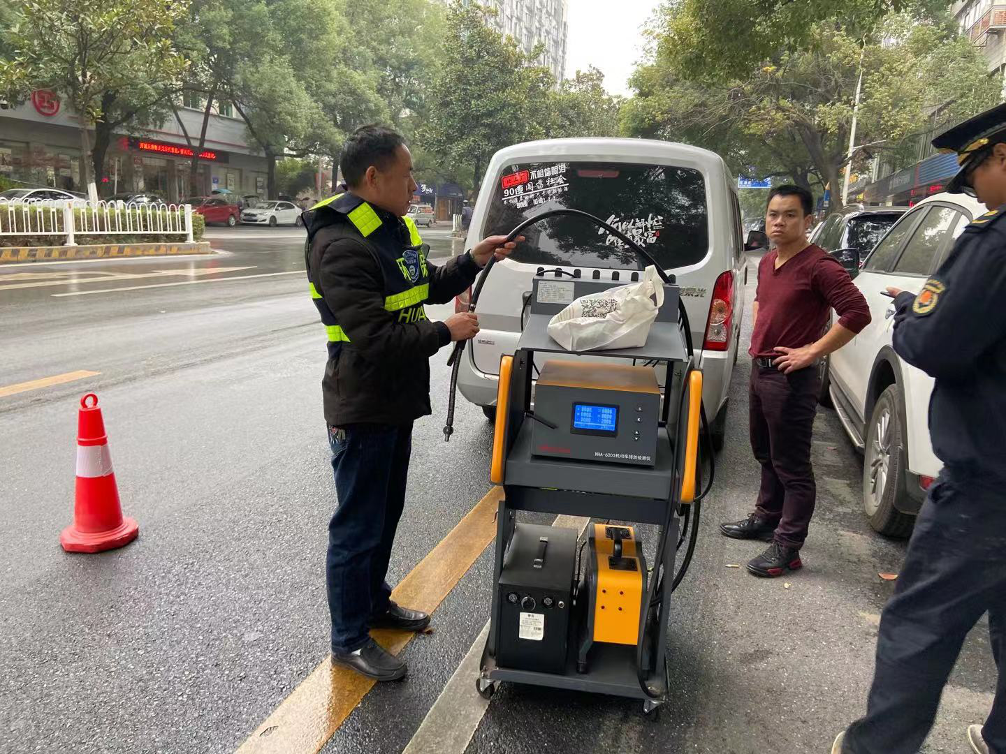 为认真推进大气污染防治攻坚战,根据株洲市环保局《关于进一步加强排放不合格机动车交通违法整治的通知》,2019年12月18日下午,荷塘分局与荷塘交警大队联合上路执法。按照任务分工,交警部门负责设置监测点,拦截车辆,对不合格车辆进行处罚,环保部门负责使用便携式检测设备对机动车尾气进行检测及上报数据。
