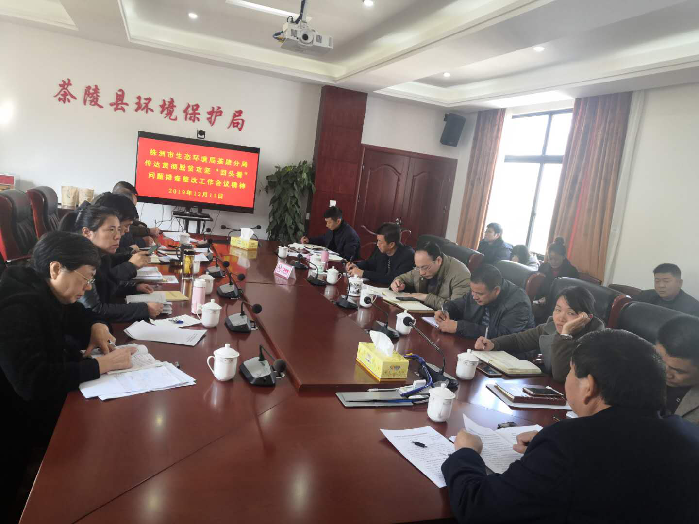 近日,株洲市生态环境局茶陵分局在分局三楼会议室传达贯彻县脱贫攻坚“回头看”问题排查整改工作会议精神,会议由分局党组书记、局长刘永新主持,分局全体人员参加会议。