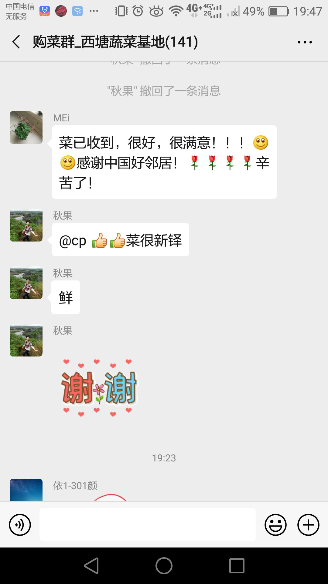 连日来,新冠肺炎疫情打乱了人们正常的生活节奏,农民的菜即将烂在地里,居民因为无法出门买菜成为了大问题。云龙生态环境局驻蛟龙社区防疫工作队彭兆君在社区得知还有万余斤蔬菜滞销的情况后,当即找到菜农摸清蔬菜滞销品种和数量,建立购菜微信群,市中心医院医护人员、共和城、依江苑等7个小区的居民与菜农实现了网上购销、送菜到小区模式。自2.14日开启运营以来,3名工作队员志愿送菜6批次,销售蔬菜、土鸡、手工面条等1400余斤,累计金额4500余元。