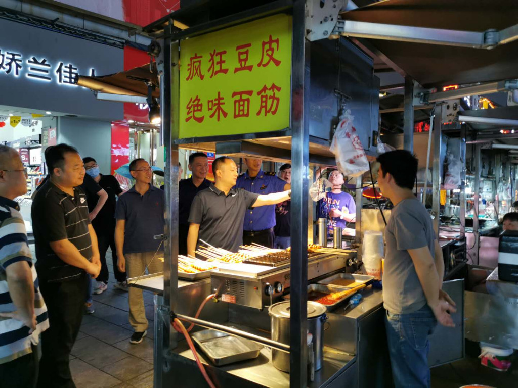姚艺一行先后巡查了徐家桥步行街、钟鼓岭步行街餐饮油烟排放情况及老妇幼工地建筑扬尘处理情况,后又兵分两路分别对大园工地、老铁路机校工地建筑扬尘,钟鼓岭、贺家土夜宵一条街餐饮油烟处理情况进行了现场检查。