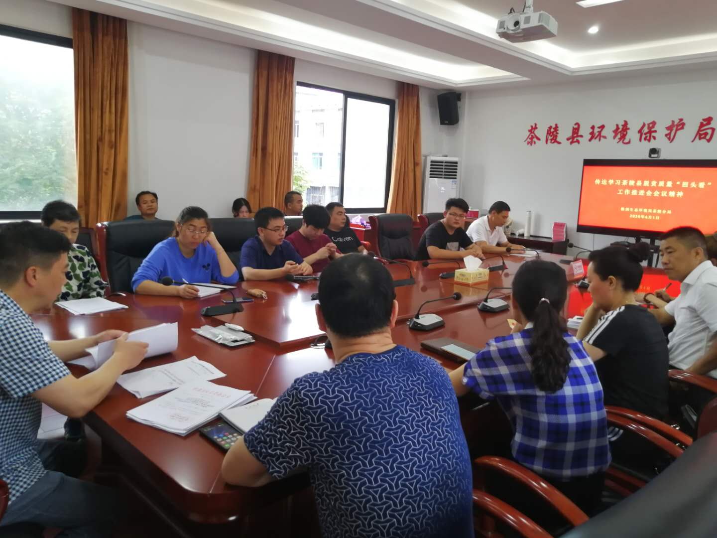 6月1日,株洲市生态环境局茶陵分局召开全体干部职工大会,传达学习茶陵县脱贫质量"回头看"工作推进会会议精神,会议由吴桂品副局长主持。