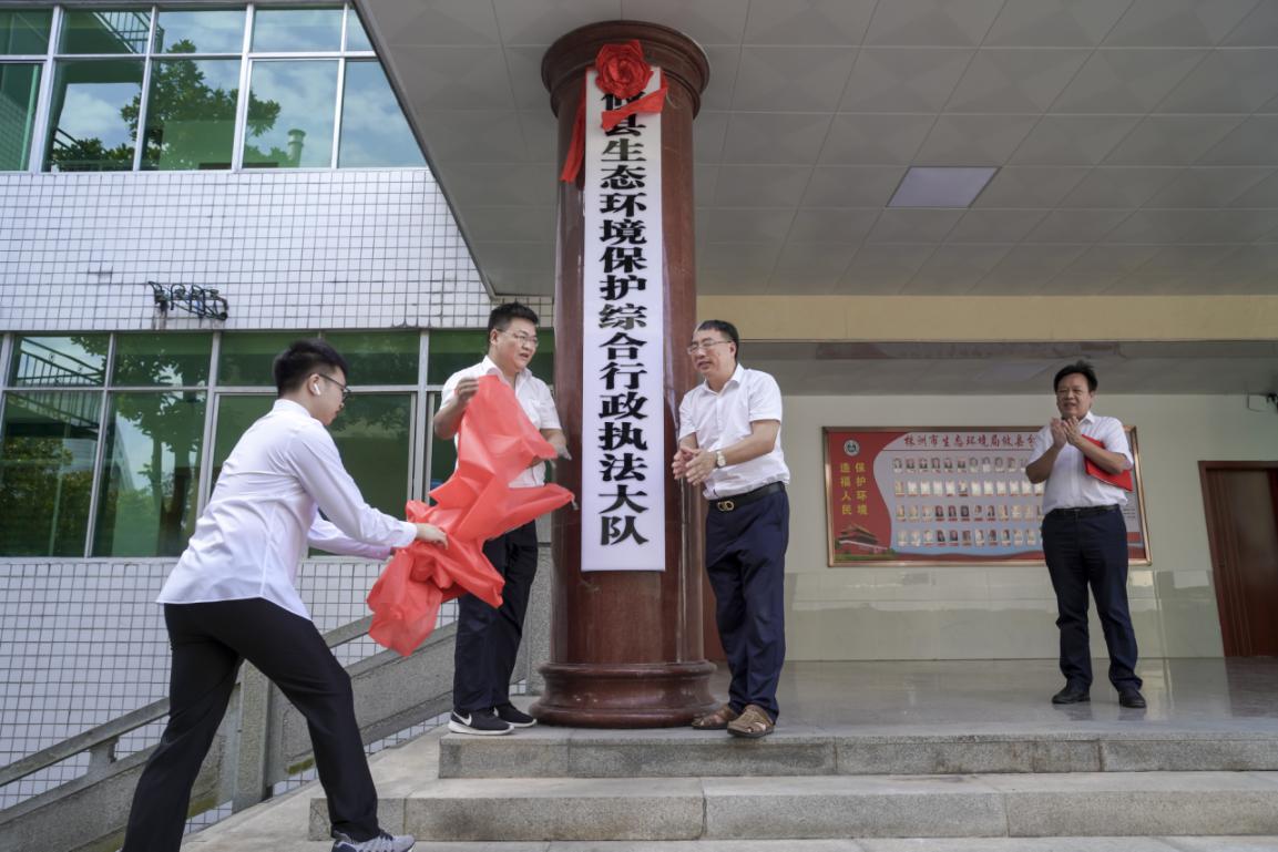 攸县生态环境保护综合行政执法局、攸县生态环境保护综合行政执法大队、株洲市攸县生态环境监测站举行揭牌仪式