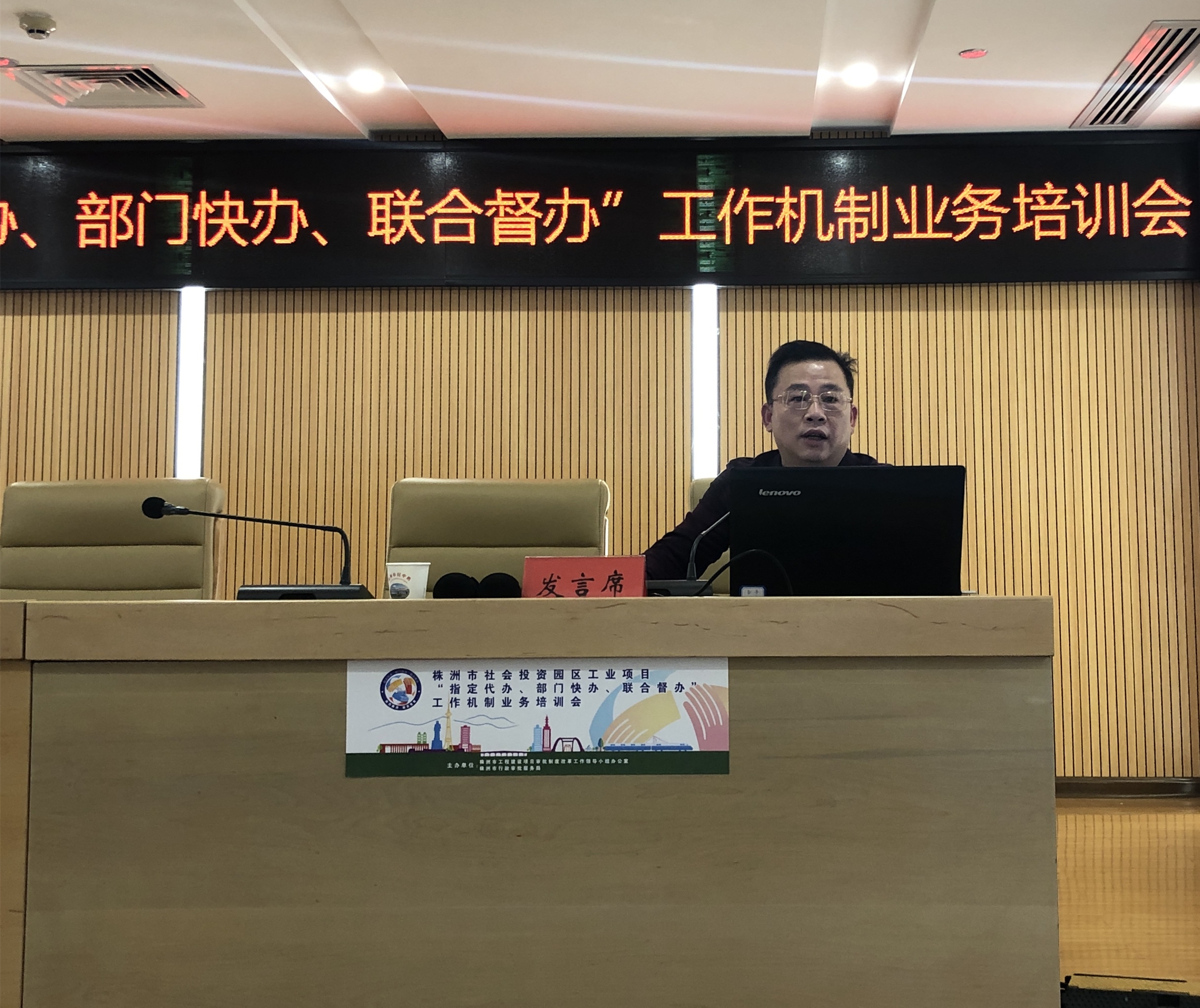 12月29日,株洲市生态环境局组织市、区县两级审批部门工作人员参加全市社会投资园区工业项目"指定代办、部门快办、联合督办"工作机制业务培训会,市生态环境局副局长毛亚文出席活动。