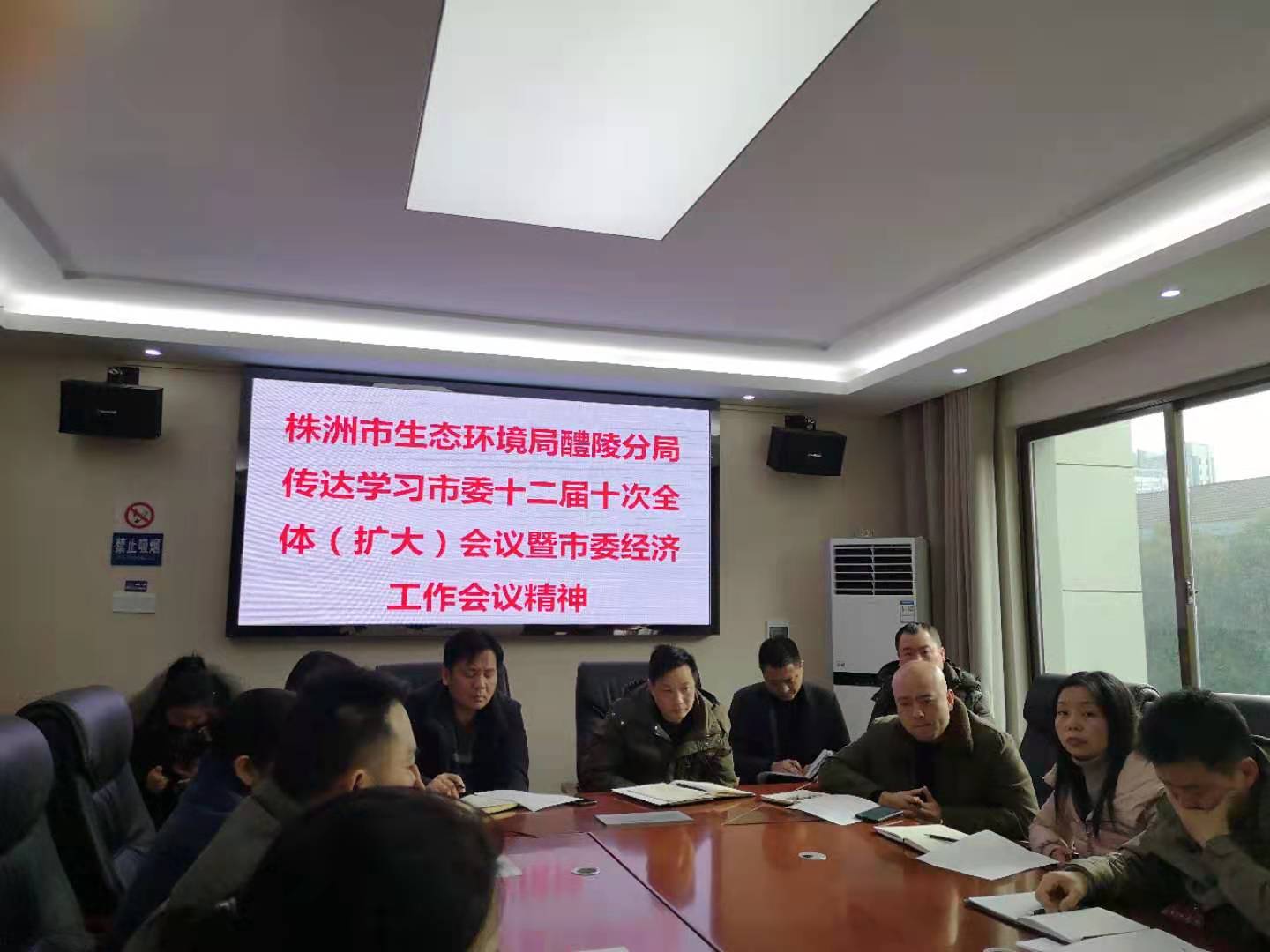 2021年1月11日,株洲市生态环境局醴陵分局召开传达学习醴陵市委十二届十次全体(扩大)会议暨市委经济工作会议精神专题会议,会议由局党组书记、局长许君明主持,局领导班子成员及中层以上干部参加。