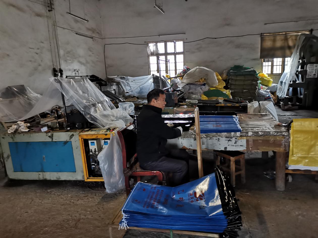 株洲市石峰区绿丰餐饮具加工厂,位于清水塘街道,该企业办理了环评手续,主要从事塑料餐具生产,配套建设了UV光解一套和布袋除尘设施一套,检查时正在生产。株洲湘东塑料有限公司,位于响石岭街道,该公司目前已停产。株洲泰宇丰工贸有限公司位于石峰区田心街道三友工业园内,该单位从事蛇皮袋组装行业,蛇皮袋内有一层黑色塑料袋。厂内主要设备有裁切机1台,主要生产工艺为:裁切黑色塑料袋—加热封口—人工套装至蛇皮袋—成品。该单位拒绝环保部门询问,称不产生污染物,将会进一步核查。