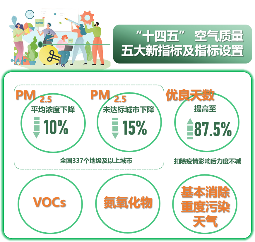会议中明确"十四五"空气质量新指标为:PM2.5、优良天数、NOx、VOCs和基本消除重度污染天数五项,其中PM2.5是全国所有地级及以上城市,不仅指未达标城市。