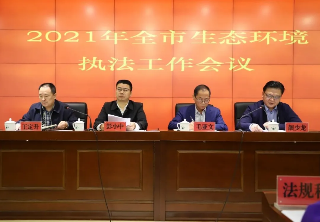 4月1日,市生态环境局召开2021年生态环境执法工作会议。党组成员、副局长毛亚文主持会议,党组成员、机关党委书记王定升,市环境执法支队支队长颜少龙分别就全市法制、执法工作进行了总结和部署。荷塘分局、攸县分局、茶陵分局主要负责人分别作了典型发言。市生态环境局党组书记、局长彭小中提出三项重要要求:一要认清形势,切实增强生态环境执法的紧迫感主动性;二要凝神聚力,以生态环境高效能执法助推生态环境高水平保护;三要扭住核心,努力打造一支生态环境执法铁军。