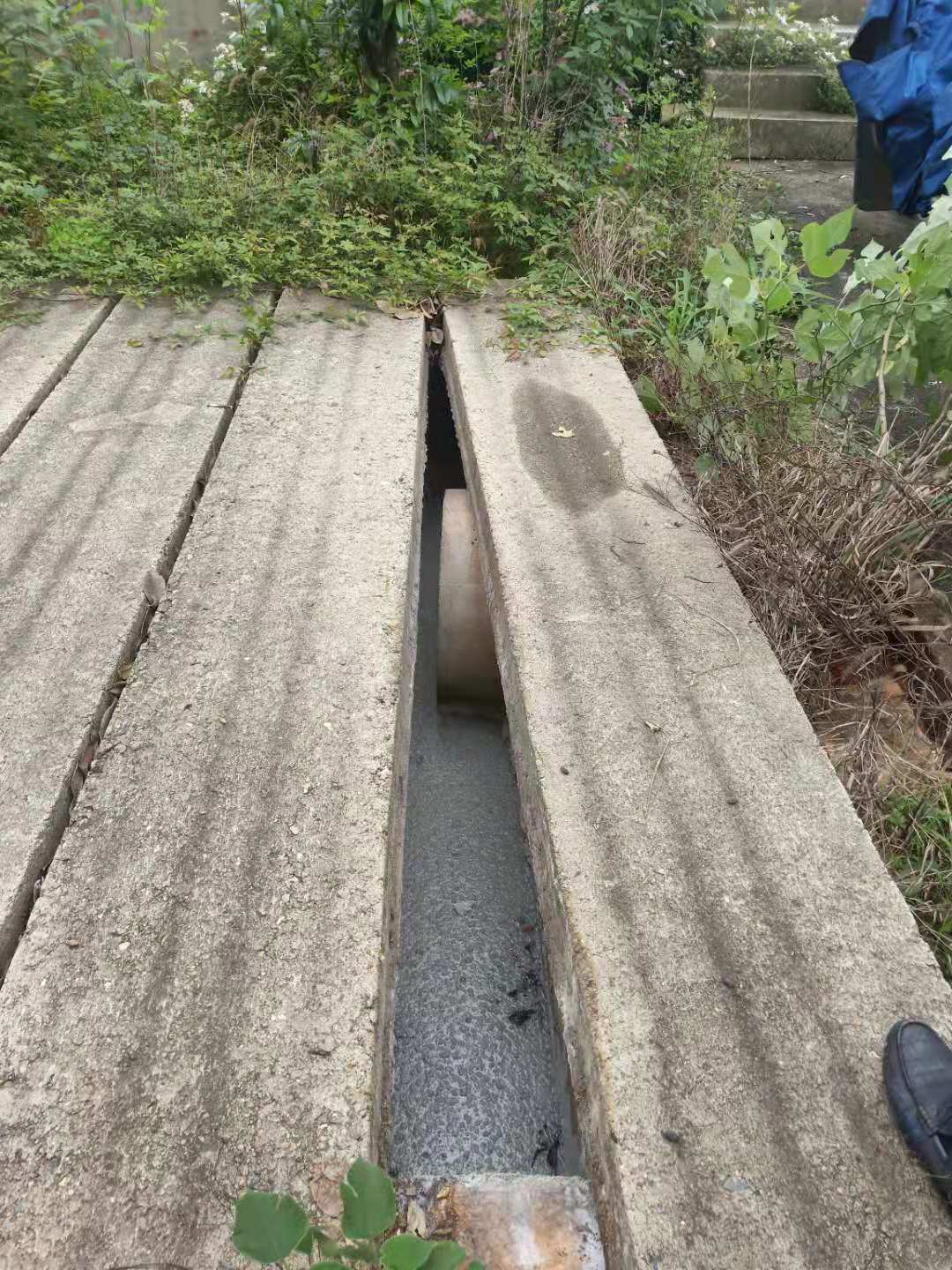 围墙外排水沟整改前 围墙外排水沟整改后