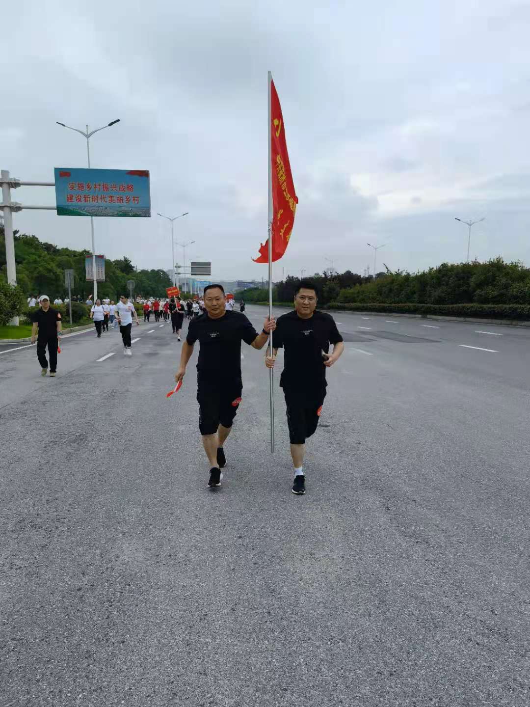 活动现场人山人海,党旗飘扬,我局参赛人员身着统一服装,手举党旗冲锋在前,携手并肩、昂首阔步走在市民中心至渌江广场的健步路上,在欢歌笑语中,15名参赛队员全部走完全程到达了终点。